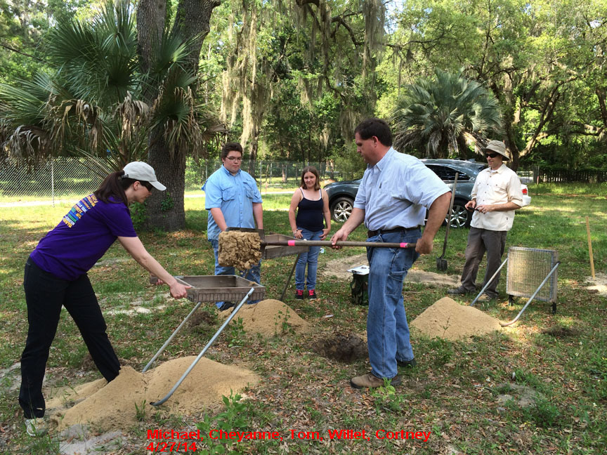 During the summer of 2014 we dug a a private lot in the city of Ocala and found many artifacts from ancient Indians several thousands years ago to Seminole Indians, settlers, and soldiers from the the 1800s. Below are pictures of the dig site and the students and volunteers that enjoyed the dig and a few of the artifacts that recovered.