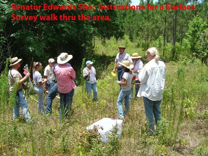 - Site Survey – We walk a potential site looking for evidence of artifacts and potential places to dig judgmental shovel test holes. The site may be near a river, lake, or pond and maybe referred to us by the owners that have found artifacts on the site.