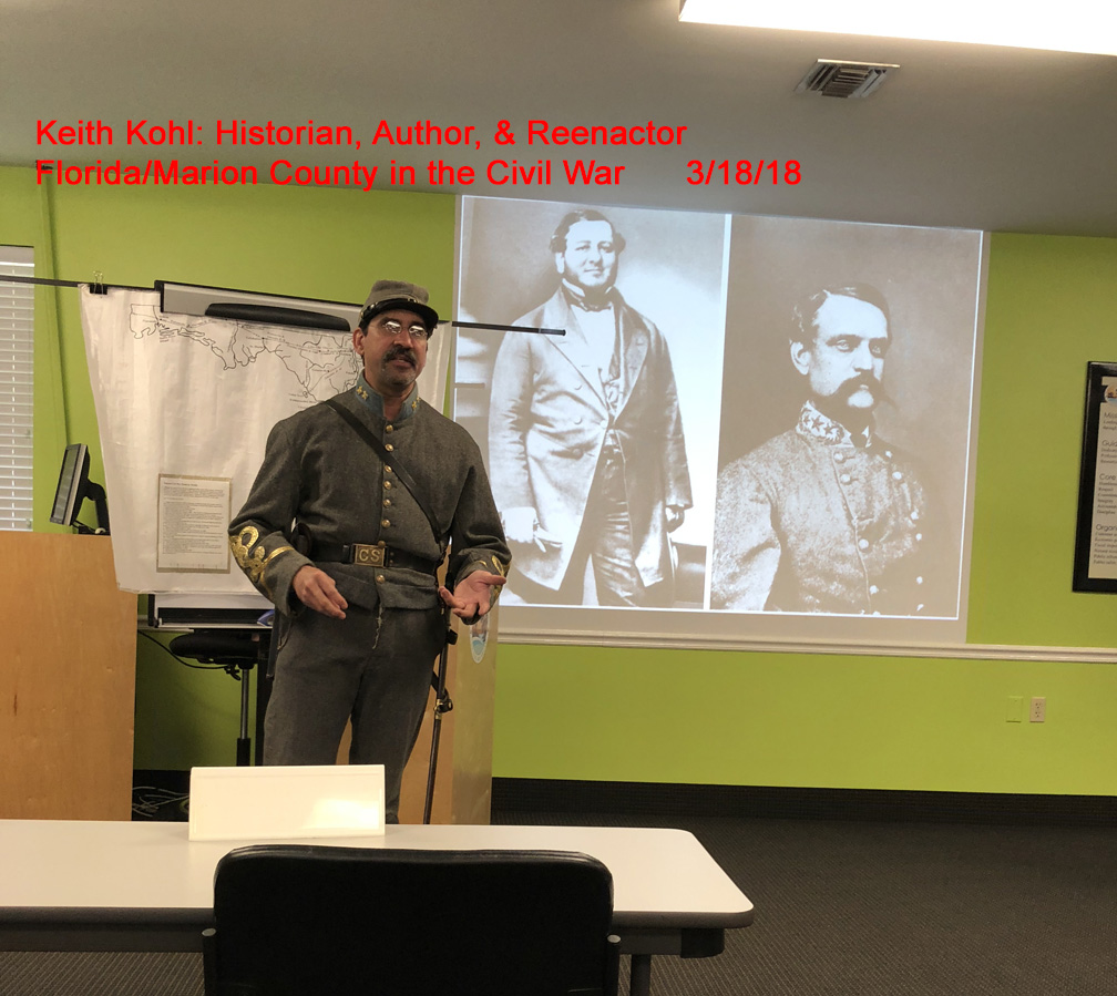 March 18, 2018 Keith Kohl, Historian, Author, Reenactor. Florida/Marion County in the Civil War