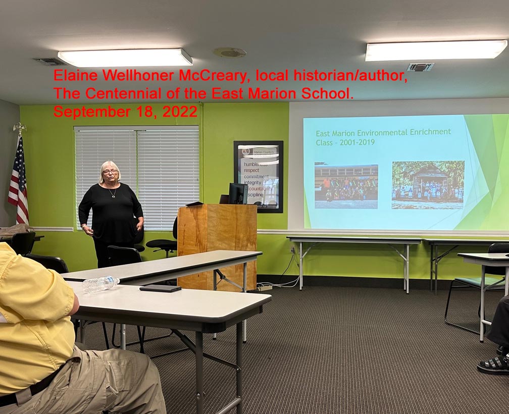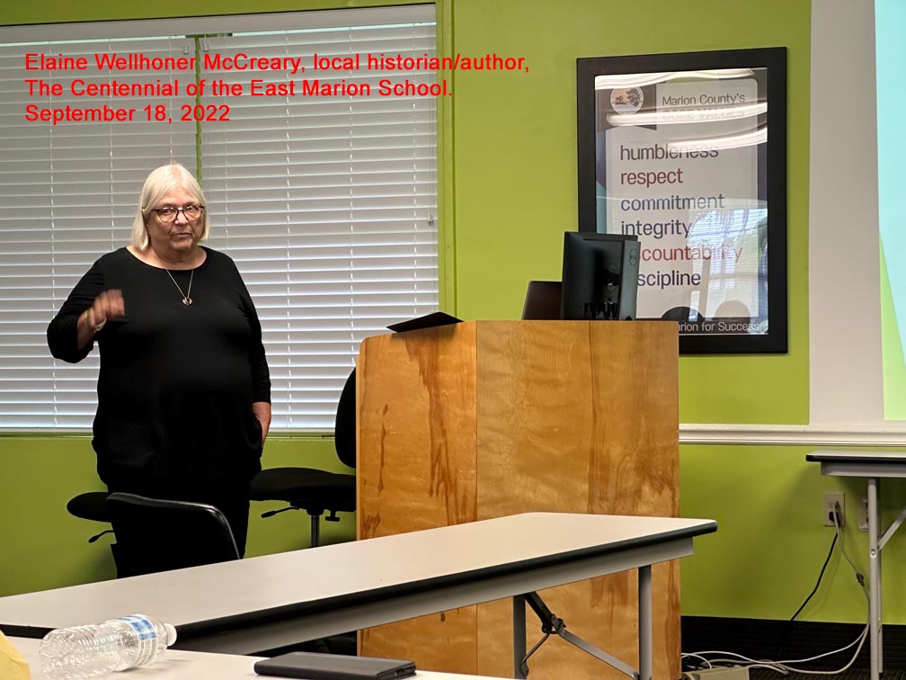 Elaine Wellhoner McCreary, local historian/author, The Centennial of the East Marion School.